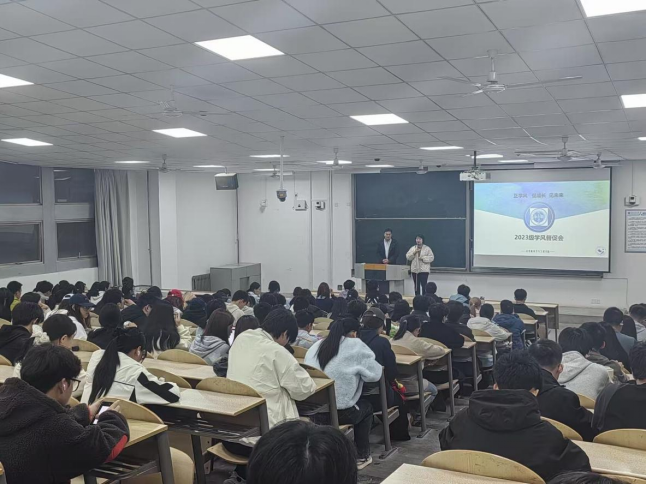 为积极营造公正、诚信的考试环境,着力培养学生的诚实守信品质,助力学生树立正确的学习观和价值观,计算机学院于12月8日下午,辅导员呼延晓蓉、李凯、于杰组织2023级全体学生,召开了考风考纪教育及年级大会。此次大会意义重大,犹如一场及时雨,为即将面临全国大学英语四、六级考试以及期末考试的同学们敲响了诚信考试的警钟。