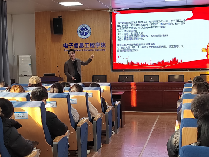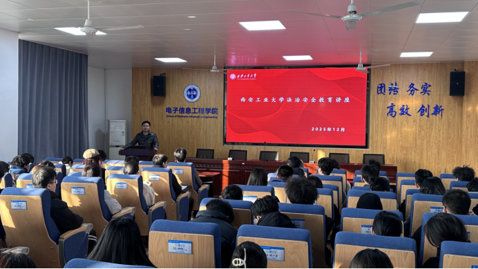 为深入学习宣传贯彻习近平法治思想,大力弘扬宪法精神,增强青年学生的法治观念与宪法意识,12月19日,西安工业大学党委学生工作部护航工作室邀请陕西世磐律师事务所合伙人刘立律师,在教5-422报告厅开展宪法日法治安全教育专题讲座,电信学院、计算机学院、基础学院和建工学院师生代表参加了讲座。