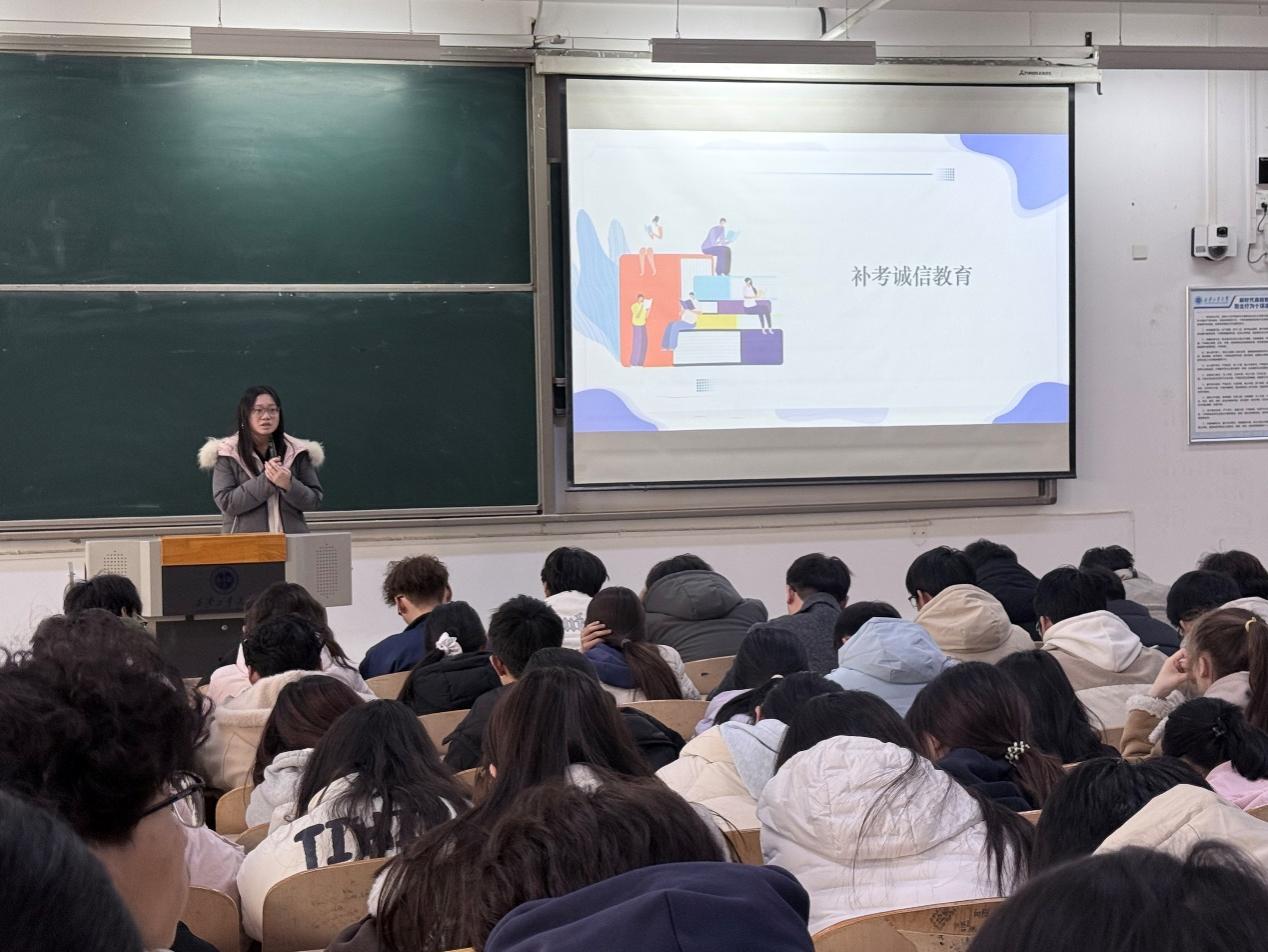 会议最后,辅导员对需参加补考的学生进行专项动员,着重强调了考风考纪的严肃性,明确要求全体考生严格遵守考试纪律,坚守诚信应考底线,坚决杜绝各类作弊行为,珍惜补考机会,认真做好备考准备,力争顺利通过补考、补齐学业短板。会后,全体同学签到了《诚信考试承诺书》。