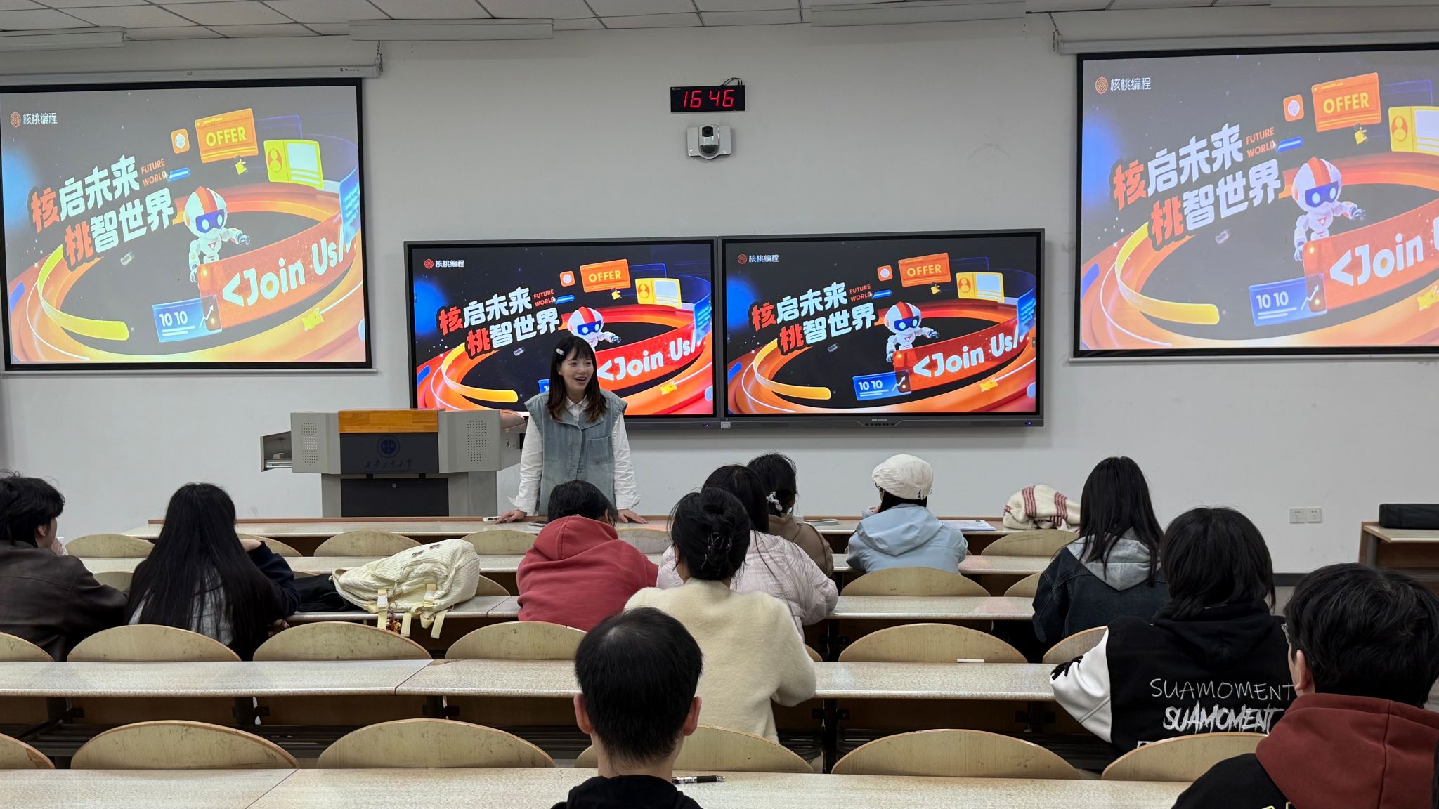 点介绍了集团本次招聘的岗位设置、职业发展通道、薪酬福利体系及培养机制,涵盖技术研发、产品运营、教学教研等多个方向,为计算机学院学子提供了多元化的就业选择。交流互动环节中,参会学生就岗位要求、技术需求、晋升空间等问题与企业代表进行了深入沟通。