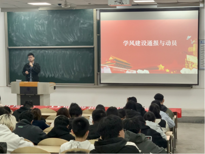 10月27日晚18点,计算机学院24级辅导员孙君在教1-104组织召开计算机学院24级学生学风建设动员会。会议通报了本学年24级物联网工程、智能科学与工程部及大数据各班级的学风整体情况。