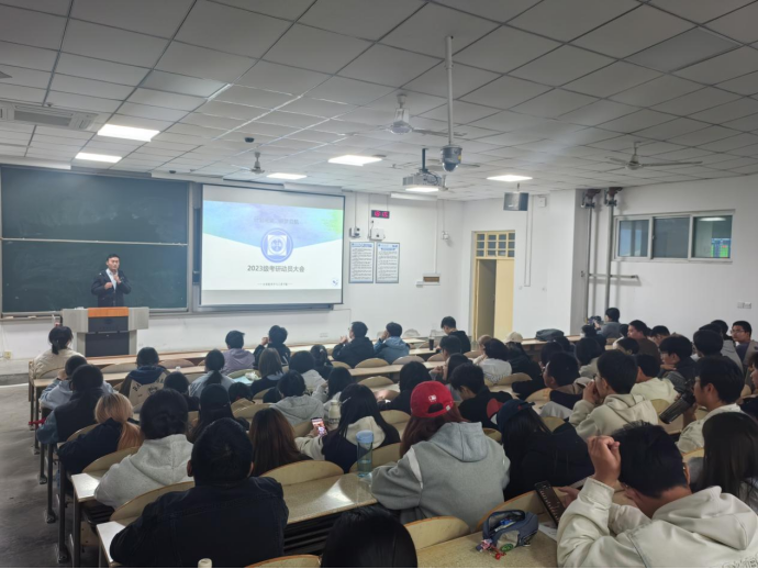 随后,于杰老师围绕考研主题展开动员讲话。他通过数据对比分析了近年来计算机相关专业的考研趋势,指出随着行业对高层次人才需求增长,研究生学历已成为进入头部企业、科研机构的重要敲门砖。于杰老师鼓励同学们结合自身职业规划,理性选择目标院校,并强调:“考研不仅是知识的比拼,更是毅力与心态的考验。大三阶段需尽早制定复习计划,夯实数学、英语等基础学科,同时关注目标院校的招生动态,做到科学备考。”