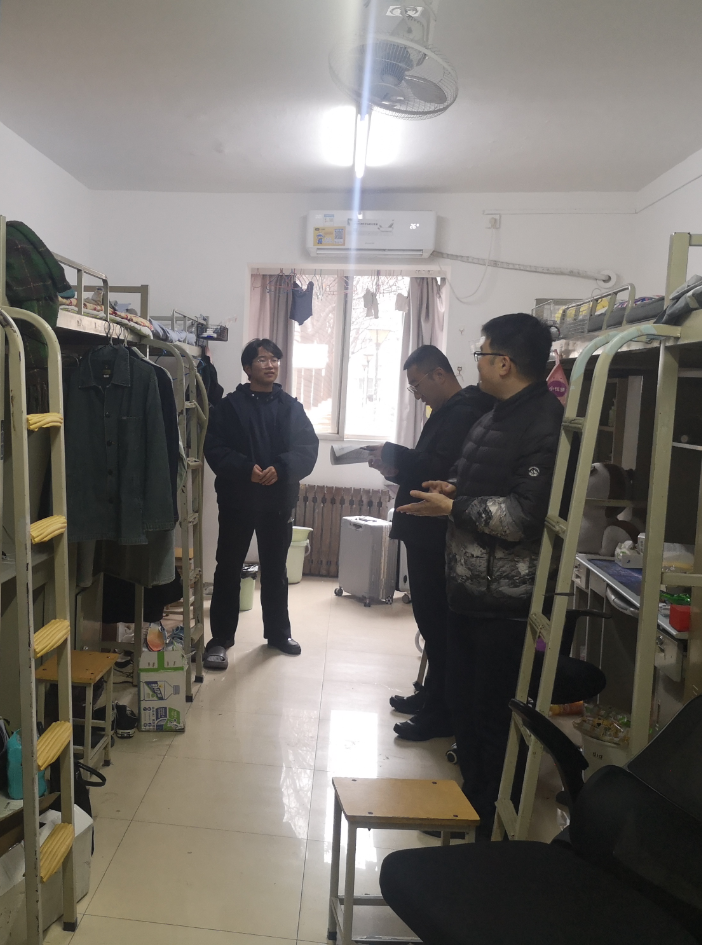 为扎实推进新学期学生工作,精准掌握学生思想动态,筑牢宿舍安全防线,3月1日下午,计算机科学与工程学院党委副书记靳永军带领全体辅导员深入学生宿舍,开展新学期学生走访工作。